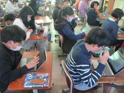 来週、木曜日にある広島県千田小学校とのZOOM交流に向けて準備を進めています。グループでプレゼン資料を作り、タイムを計測するなど協力しながら進めています。資料の提示の仕方も上手になってきました!