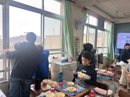 給食時間にふと窓の外を見ていると、雪が降っていました。
