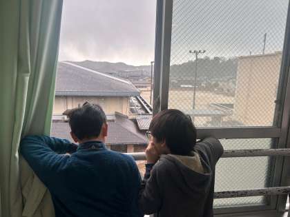 今年度初めての雪だったので、子どもたちは大喜びで外を眺めていました。「雪が積もれば雪合戦ができる!」と積もる日を楽しみにしています。
