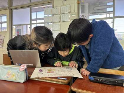 今日は、お正月にちなんで「すごろく」をしました。班で協力し、マス目に書かれたお題に取り組む中で、徐々に子ども達の笑顔が増えてきたように感じました。