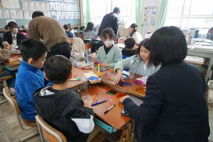 今日は北稜高校の方々と一緒にワークショップに取り組みました。お会いする前は、初めましてお会いする高校生にドキドキした様子の子どもたちでしたが、いざ始まってみると、大盛り上がりでした。「高校生に褒めてもらった!」「1か月後にまた会えるの楽しみ!」と、次回への期待も高まっています。