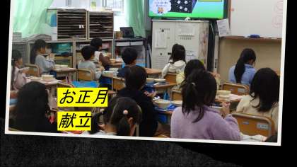 今日は、なごみ献立でした。「ごまめ」「京風みそしる」「煮しめ」を頂きました。それぞれのお料理の意味も知ってお正月料理の大切さを感じながら食べることができました。