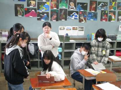 5年生の靴箱前に貼ってある、掲示板をご存じでしょうか。そこには教職員の好きなことなどが書かれています。3学期は京都や学校のおすすめスポットが書いてあります。それに対して6年生は質問を考えました。