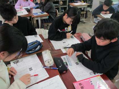 「想像力のスイッチを入れよう」の学習では、前回に引き続き事例と筆者の意見を整理しました。グループで協力しながら、筆者の意見を探しました。複数の事例を挙げて説明することの効果を自分の言葉でまとめることができました。