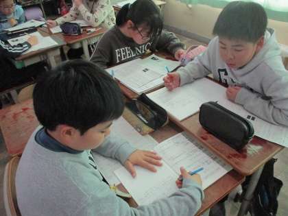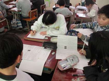 「想像力のスイッチを入れよう」の学習では、筆者の考える「想像力のスイッチ」とは何かをまとめました。「大切」や「想像」という言葉に着目しながら必要な部分を見つけ出し、まとめていました。「これも大切やからいれた方がいいんちゃう?」と積極的にグループで話し合っている姿も見られました。