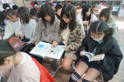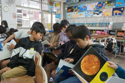 今日は、中央図書館から2名の方が学校に来てくださり、「宇宙」をテーマに読み聞かせや、本の紹介をしていただきました。「宇宙」の大きさを知れる本や、天文学者カール・セーガンの伝記、彗星に関する物語など、多種多様な本を紹介してくださりました。子どもたちにとっては、驚きと感動の連続だったようで、「そんなに大きいん?!」「理科で教えてもらったやつや!」など色々な声があがっていました。これからも、様々なジャンルの本に触れて、知見を広げていってほしいと思います。