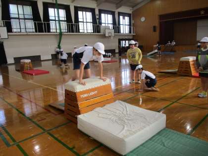 最後の跳び箱運動でした。できる技が増えた人も多く、いろんなところから「できたー!」という声が聞こえてきました。お互いにアドバイスし合って高め合っていた成果ですね。