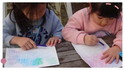 校内の色々なものをさわりごこちを見つけて楽しみました。「冷たいな」「ざらざらするな」とさわりごこちを味わいました。そして、いろいろなものにさわったあとに、紙にうつしてみました。いろいろな模様ができてさわりごこちと比べて面白さや楽しさをみんなで交流しました。