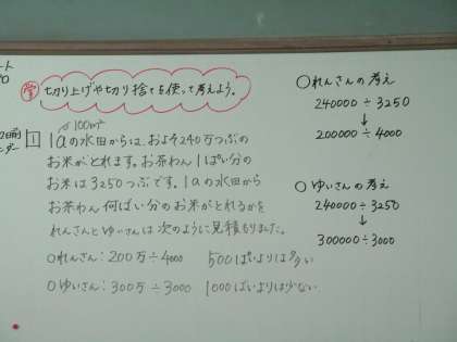 概数を学習しました。計算しにくいものはおおよその計をする。これからの日常でも見積をとるときに使います。