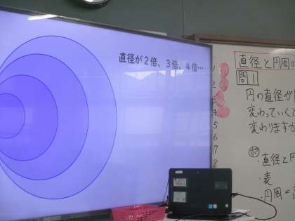 直径の長さと円周の長さの関係について調べました。