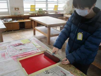 彫り進み版画もラストスパート。