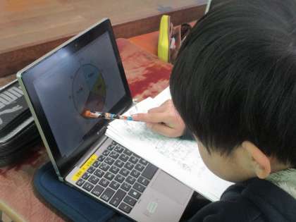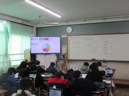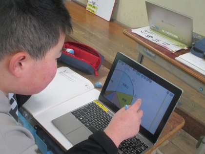 円グラフや帯グラフの良さについて今日は考えたり、読み取り方について学習しました。