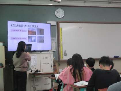 来週の掃除の実習にむけて計画をたてました。掃除をする順番や使う道具について話し合い、綿密な計画を立てていました。学校をきれいにするのが楽しみですね!