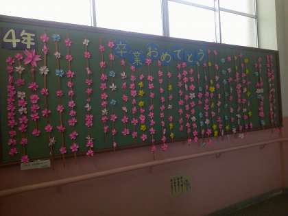 もうすぐ6年生は卒業になります。お世話になった6年生の花道をかざれるように、みんなで桜の飾りを作りました。