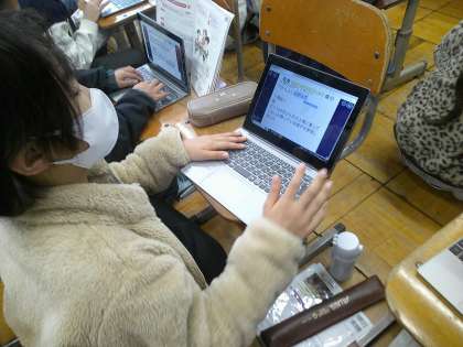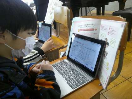 今日の音楽科の授業では、GIGA端末も使いながら、「さくらさくら」の旋律を感じ取ることができました。