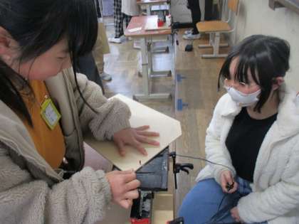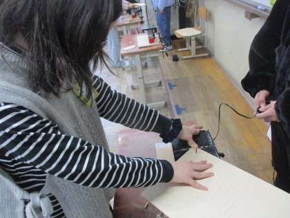 糸のこぎりの使い方にも少しずつ慣れてきています。下書きの線からはみ出ないように意識しながら、慎重に進めています。絵の具で思い思いの絵を描き始めています。