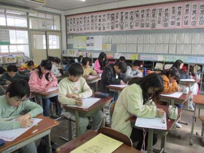 今年度最後の漢字50問テストを行いました。始まるギリギリまで勉強している人もいました。納得のいく結果を出すことはできたでしょうか。間違えたところはしっかり復習して、6年生へとつなげていきたいですね。