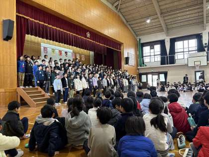 6年生を送る会では、1〜5年が各学年ごとに歌や踊り、寸劇などの発表をして、6年生への感謝の気持ちを伝えました。