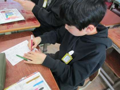 めいとく学習の米作りでお世話になった畑の先生方へお手紙を書きました。明日の感謝の集いで渡します。おいしいお米を作ることができたのは、畑の先生方が田起こしから収穫まで教えていただいたおかげです。明日はその感謝の思いをしっかりと伝えたいですね。