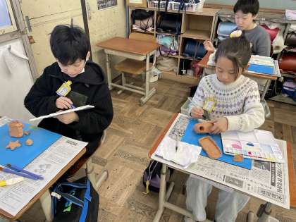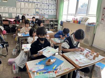 4年生 図画工作科「元気のおまもり」色をつけよう