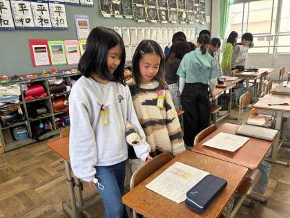 社会科では、1年間で47都道府県について学習してきました。そして、学習の総まとめとして、自分で選んだ都道府県の良さをアピールする、オリジナルご当地キャラクターを考えました。特産品や有名なものを組み合わせ、創意工夫を凝らした素敵なキャラクターが完成しました。