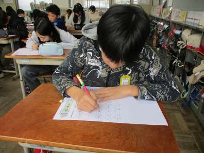 聞き取りテストをしました。大事なことを聞き逃さないように一生懸命メモして、取り組んでいました。国語のテストは今日で最後でした。また6年生でも頑張ってほしいです!