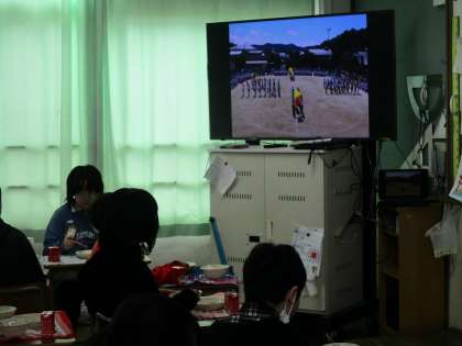 スポーツフェスタで行ったフラッグ演技の動画を見ました。始まった瞬間に「懐かしい」と言っていました。たくさん練習して、よく頑張ったよね。中には思わず踊っている子もいました。