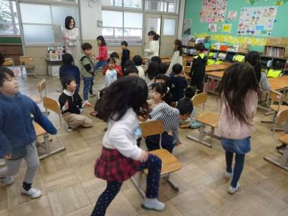 1年間「やさしさ」「げんき」「やるき」いっぱいにがんばってきたことを振り返りました。これまでのがんばりをみんなで喜んで最後のお楽しみ会をしました。みんなが笑顔で楽しく遊ぶことができました。とても楽しい雰囲気で終わりました。1年間、お世話になった