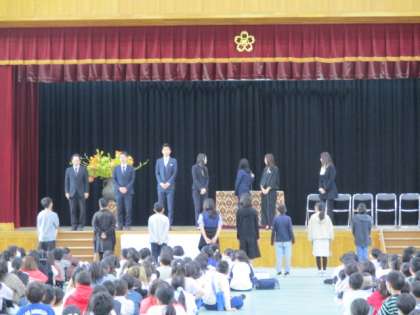 今年度は10名の方が離任されました。代表児童の笑いあり涙ありのお別れの言葉が素敵でした。皆様、大変お世話になりました。新天地でのご活躍をお祈り申し上げます。