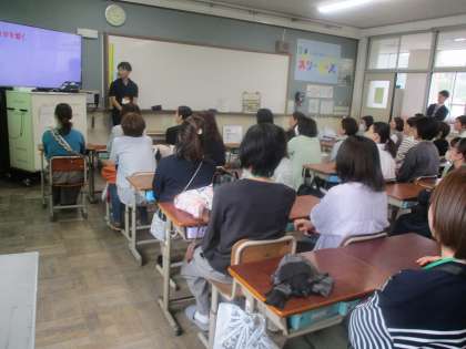 学年懇談会も、たくさんの保護者の方に参加していただきました。学校、学年で大切にしていること、学年目標が決まった経緯、家庭学習などについてお話させていただきました。