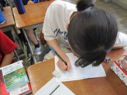 朝の帯時間では、算数の復習に取り組んでいます。今日は5年生の復習で多角形の角度を求めました。5年生の内容は覚えていましたか?何度も繰り返し復習することを続けていきたいですね。