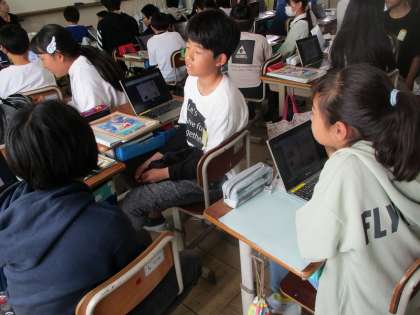 自己紹介をレベルアップさせるために、友達と質問しあって使えるフレーズを増やしていました。5年生との交流で、6年生らしい姿を見せたいですね!