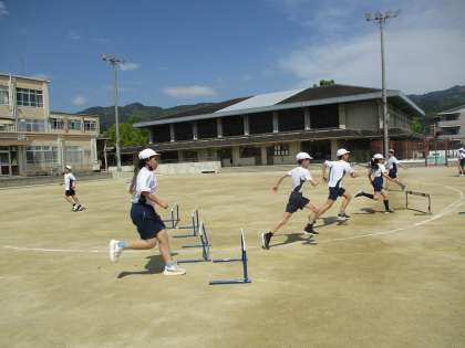 ハードル走の学習が始まりました。コース毎に違うインターバルにし、自分のインターバルを見つけるために、いろいろ試していました。リズムをつかんでタイムを上げられるように工夫していきたいですね。