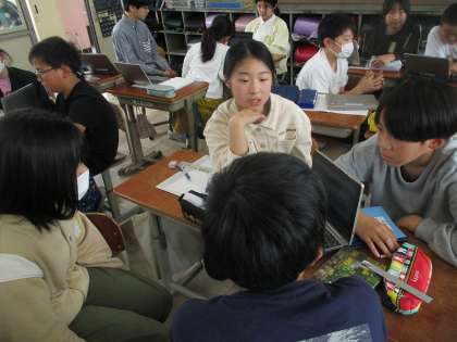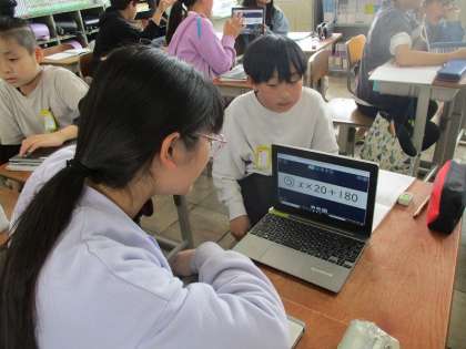 文字を使った式の意味を考えてグループやペアで説明しました。式が表している具体的な場面を分かりやすく説明しようと頑張っていました。説明は長くしすぎると余計に伝わりづらくなる、なるべく簡潔に、大切なことは取りこぼさずに、を意識して話していました。