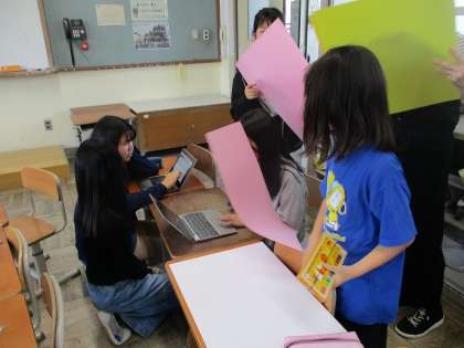 児童会本部を中心に1年生をむかえる会の準備を進めています。明徳小学校の〇×表や、看板を作っています。全校で取り組む今年度最初の行事です。みんなで楽しく1年生をお祝いしたいですね。児童会本部のみなさん、よろしくお願いします!