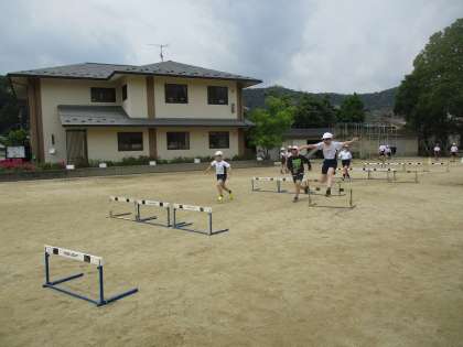 ハードル走では、自分のインターバルを決めて正しいリズムでハードルを跳べるように走っています。これまでの授業で、少しずつ自分のインターバルをつかめてきているようです。次回からは、50mの記録から算出した目安の記録に届くように工夫していきたいですね。