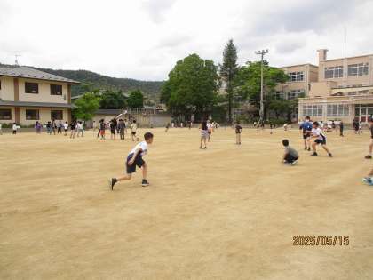 新しく休み時間にフリスビーを使うことができるようになり、ドッジビーをして遊んでいます。晴天で外遊びにはもってこいのお天気でした。