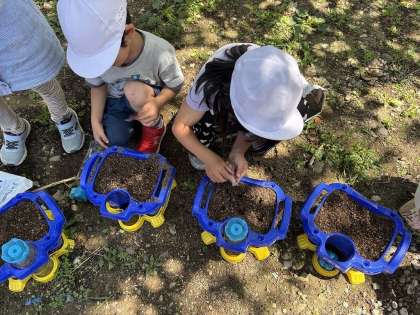 また、翌朝には「早く芽がでーへんかな。」「誰のアサガオが最初に芽を出すかな?」と、水やりをしながら楽しそうな声が聞こえてきました。