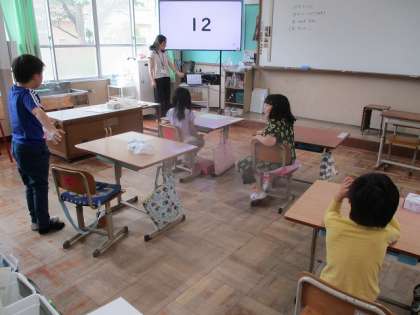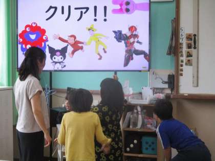 ローテーションで画面に映し出された数字を読む学習から始めています。難しい問題の場合は子どもたちでヒントを出し合ってみんなで「できた!」という喜びを分かち合っています。この学習だけで5つ分の「できた」が積み重なります。そうすると、「もっと難しくなるけど大丈夫かな?」と聞いたとき、「よっしゃー!」と気合十分で取り組んでいました。出来なくても頑張ってみようという粘り強い気持ちを育んでいきたいと思います。