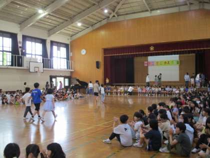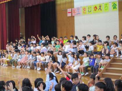 5月20日(火)2時間目は1年生を迎える会でした。6年生と手をつないで、元気に入場してきた1年生に大きな拍手!お祝いの気持ちを込めたドレミの歌、学校クイズなど、みんなで楽しい時間を過ごしました。6年生手作りの名札ペンダントもぷれぜんとしてもらい、笑顔いっぱいでした。1年生のお返しの言葉と歌はとても可愛くて、みんなで懐かしく思っていました。これから一緒に仲良く楽しく過ごしましょう。