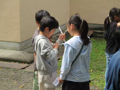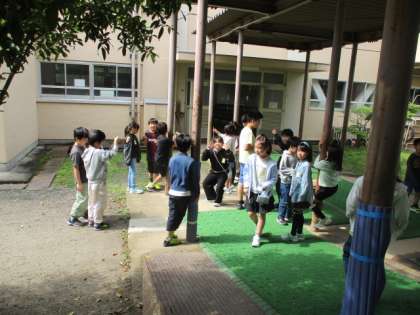 日当たりの良いところにぶら下がっている温度計は30度を軽く超えます。それを見た子は、「日に当たっていると熱中症になるわけや。」と新たなことを学んだようです。