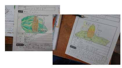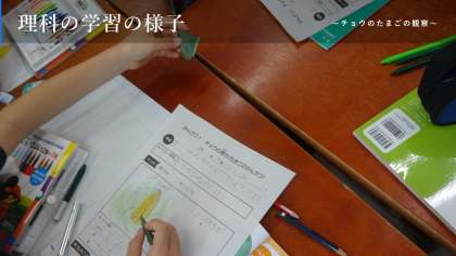 「色はうすい黄色でたてながだな。」「1ミリくらいかな。」とじっくりとたまごを観察していました。幼虫になったら、どうなるのかな・・・何をたべるのだろう・・・と興味もどんどん高まっている様子です。