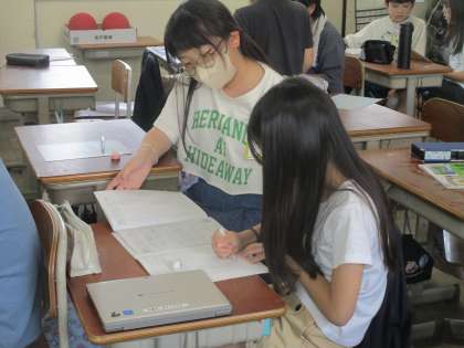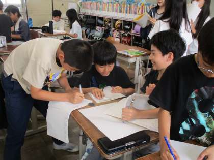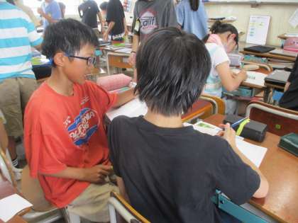 自分の調べた学習課題について、友達に説明しました。違うテーマについて調べている友達のノートを熱心にみたり、自分のノートに聞いたことをさらにまとめたりしていました。自分の調べたことに関しては、とても積極的に友達に話しをし、いきいきとした様子でした。