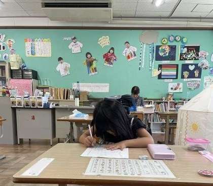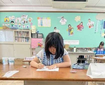 「グー・ペタ・ピンの合図で姿勢を正して座る」「鉛筆はお箸より下のほうを持つ」「鉛筆を持たないほうの手は紙を押さえる」といったことを丁寧に学習しました。線からはみ出さないように気をつけながら書く姿は真剣そのもの。書き終わったら自分で見直しをして消しゴムを使って丁寧に消す。当たり前のことのように感じますが、とても大事なことです。1時間最後まで集中を切らさず、頑張っていました。「今日勉強したみたいに宿題も頑張りたい!」と嬉しそうにしている姿が印象的でした。