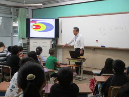6月3日火曜日3時間目に、京都府警の方に来ていただき、非行防止教室をしていただきました。今回は、いじめなどの犯罪とインターネット利用に関するお話を中心に進めていただきました。警察の方のお話ということで子どもたちは緊張気味に学習を始めましたが、ユニークな語り口調で場は和み、じっと聞き入ったり、思わず感想の声を上げたりするなど、集中して学習に取り組めました。