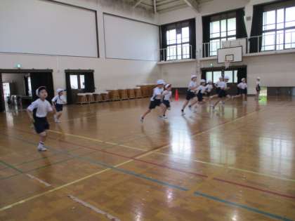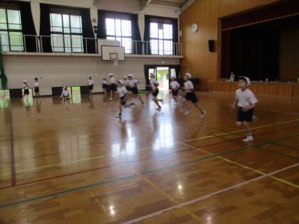 汗をいっぱいかいて教室に戻ってきた子は、口々に「去年より伸びた!」「途中で足をひねりそうになった。」と言っていました。走り始めの時に、既定の20mの線まで速く行って止まる、という走りの形では、記録は伸びにくいです。ゆっくりと走り続けた方が疲れはたまりにくいもの。来年はどのような記録になるでしょうね。