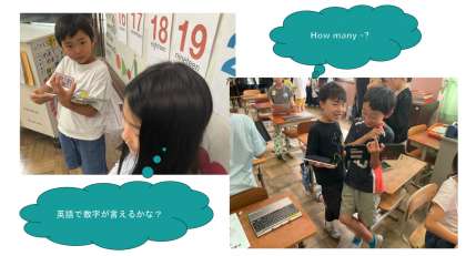 外国語活動では、How many?クイズをしました。友だちとやり取りをしながら、うまく言えない数字も言えるようになってきました。11〜20までの数を数えたり、やりとりも知っている英語を使って伝えたり、ジャスチャーで伝えたりして数え方に親しみました。
