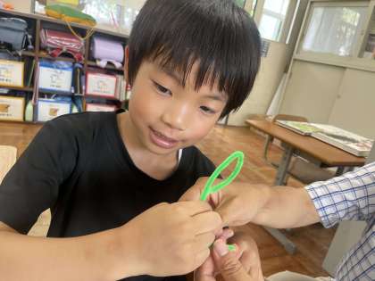 思ったよりも時間がかかる、根気のいる作業でしたが、子どもたちは最後まで丁寧に毛糸を巻き付けることができました。