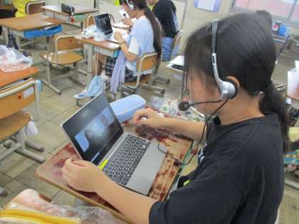 市原野小学校とオンライン交流をしました。お互いの修学旅行について楽しかったことを英語で交流しました。オンライン交流も慣れてきて、「I go first!」と自分から話し始められている人もたくさんいました。
