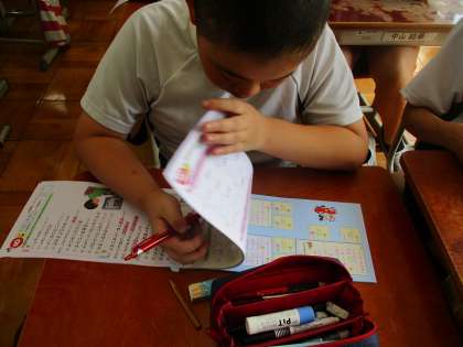 帯時間に漢字のドリルを使って漢字の学習を進めています。答えをよく見て自己採点までしっかり取り組んでいます。自己採点を正しくすることで、自分の力を正しく量ることができます。コツコツ取り組んでいきましょう。